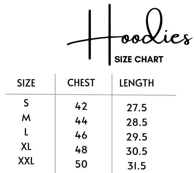Size chart - Hoodies
